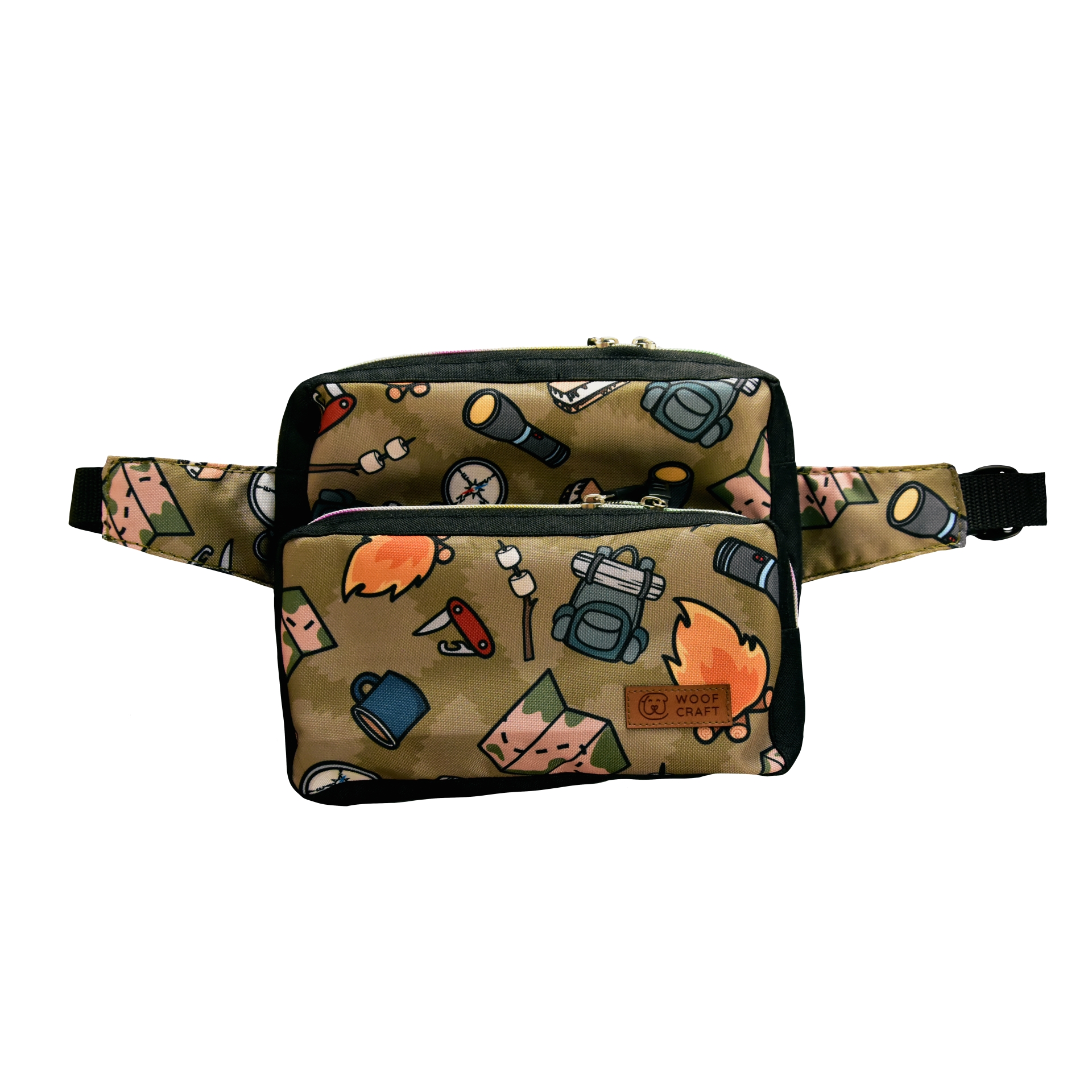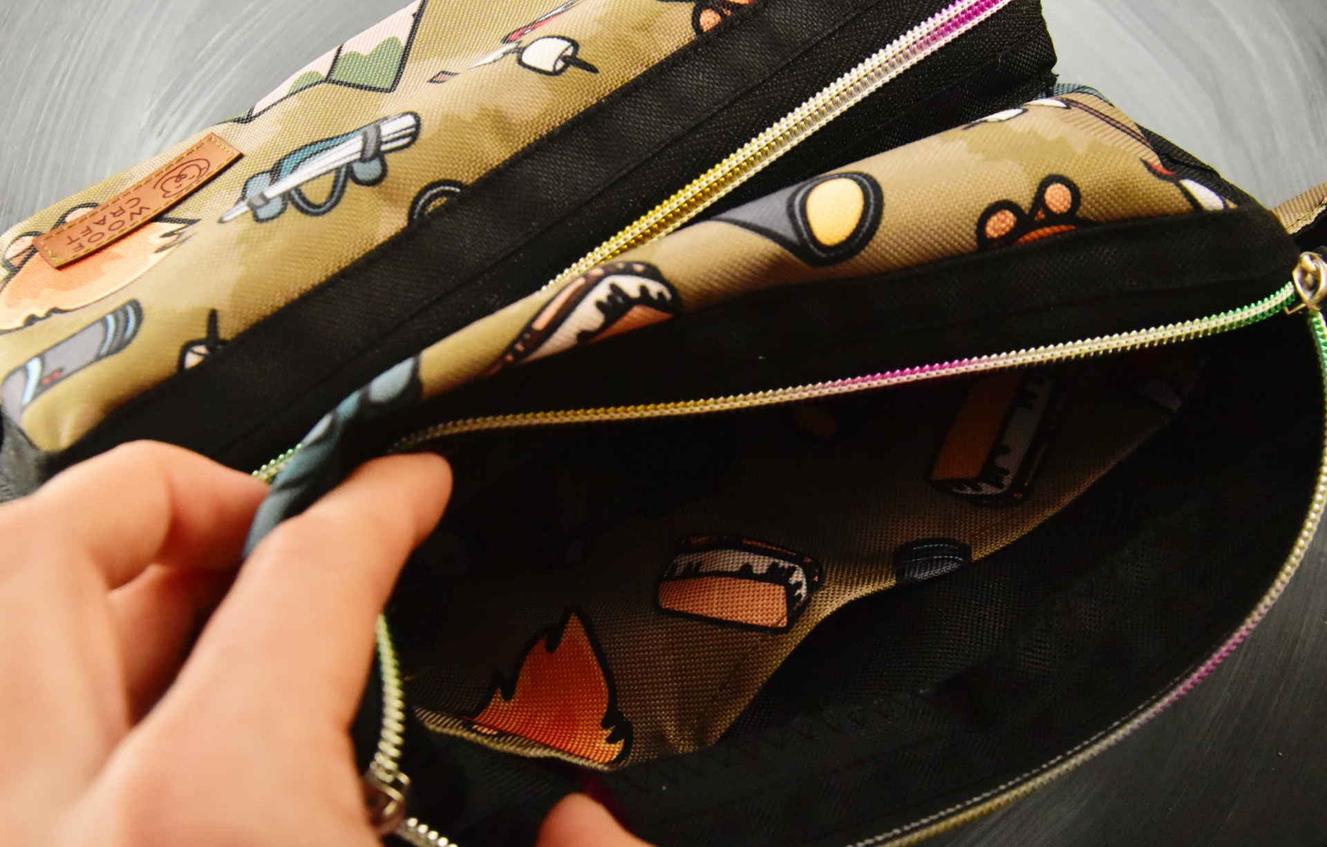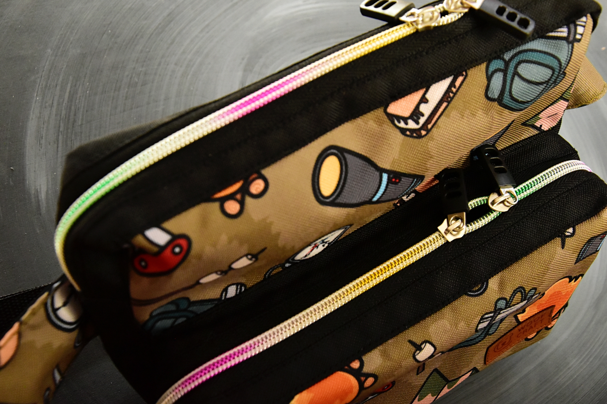 Nerka w całości wykonana jest z wodoodpornego materiału, wszystkie kieszenie od wewnątrz również podszyte są dodatkową warstwą wodoodpornego materiału, tak żeby po spacerze telefon nie pachniał jak sklep mięsny. Nerka ma dwie duże zapinane na zamek kieszenie. Przednia, mniejsza kieszeń – jest jedną komorą do której możecie np wsypać smaczki. Druga, duża kieszeń, w której możecie nosić zabawki, wodę i to czego jeszcze tylko potrzebujecie, ma w środku “przy ciele” wszytą płaską kieszonkę, w której idealnie zmieści się np. telefon. Zamki w obydwu komorach wyposażone są w dwa suwaki dzięki czemu możecie otwierać ją z dowolnej strony lub zostawić sobie nawet częściowo otwartą nie martwiąc się o to, że zostawicie za sobą ślad z rozsypanych chrupek.