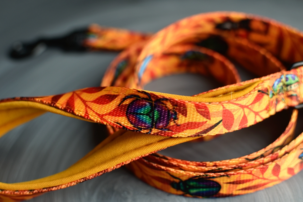 Każda szyta przez nas smycz miejska wyposażona jest w standardzie w piankowe podszycie rączki. Tak żeby w trakcie spaceru nawet właściciele prawdziwym psich ciągników mogli czerpać z niego radość! Jeśli wolisz jednak smycz bez podszycia rączki pamiętaj żeby zaznaczyć to przy zamówieniu!