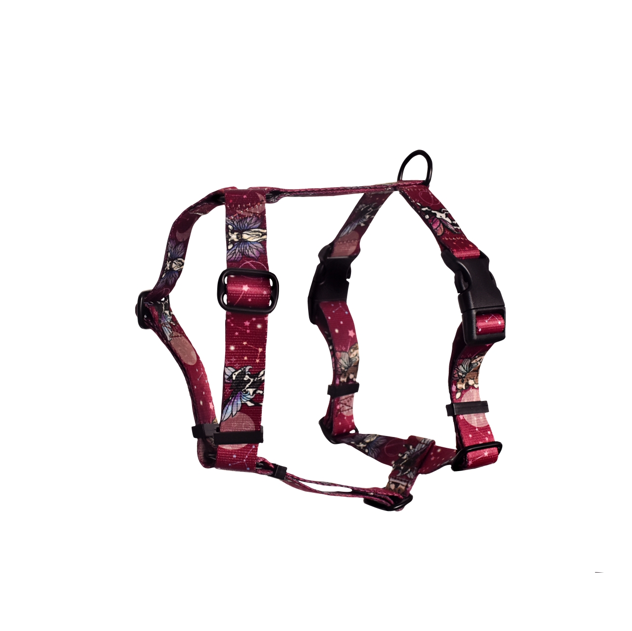 W standardzie szelki wyposażone są w metalowe regulatory oraz dwie klamry na tylnej obręczy.
