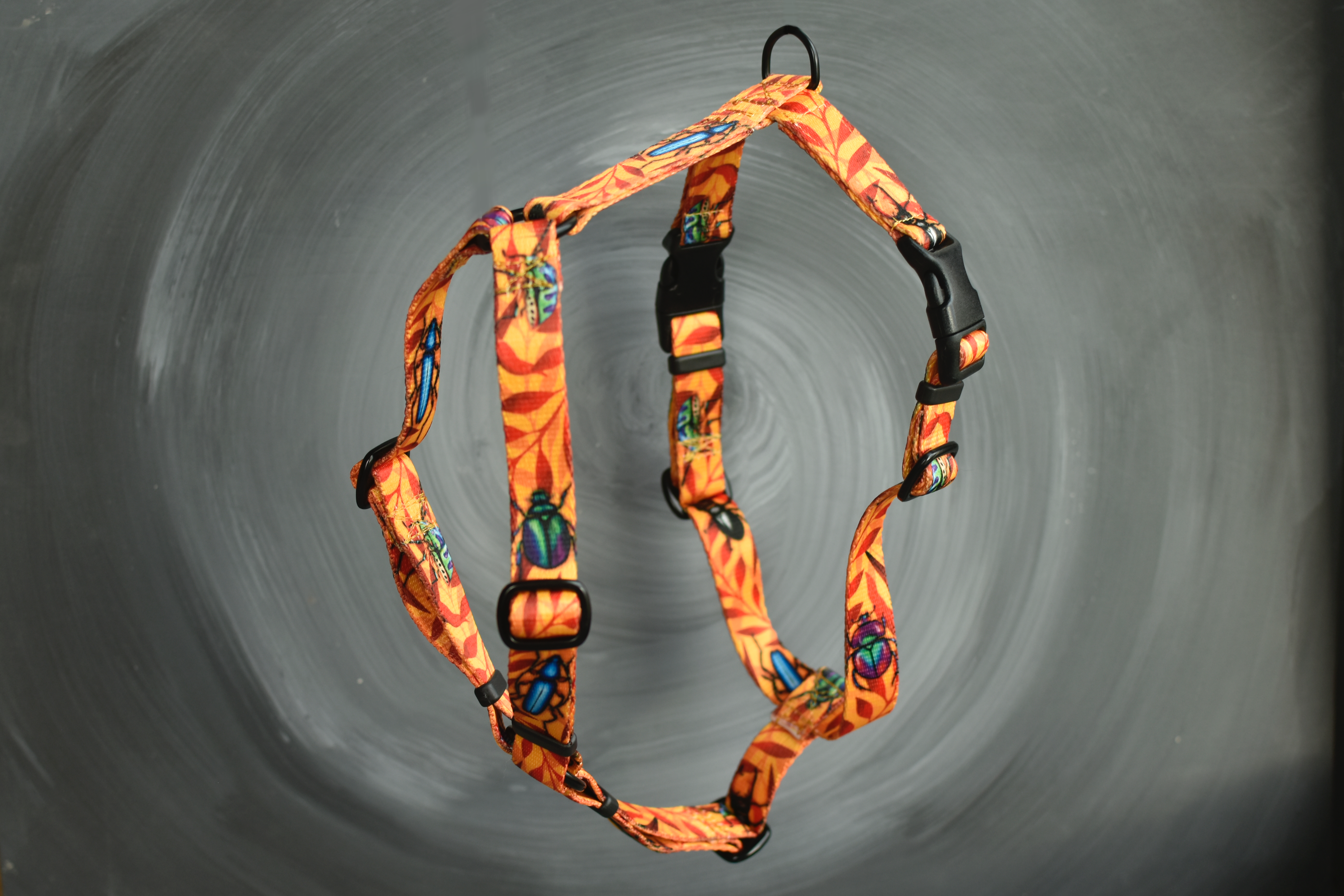 W standardzie szelki posiadają metalowe regulatory oraz dwie klamry na tylnej obręczy.